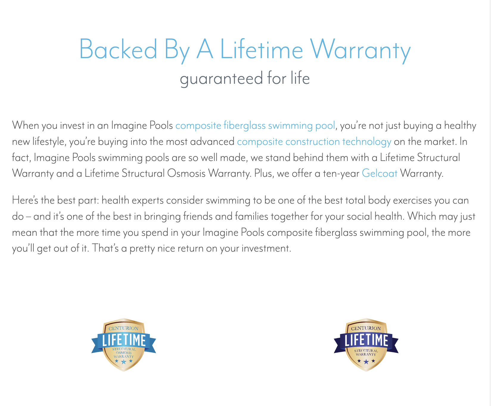 Imagine Pools are built using reinforced composite construction designed for long-term performance. In other words, you get a strong pool shell paired with a smooth swimming surface that is built for years of everyday use.